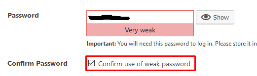 (Bila password kamu di bilang lemah, kamu bisa check list confirm use weak password).