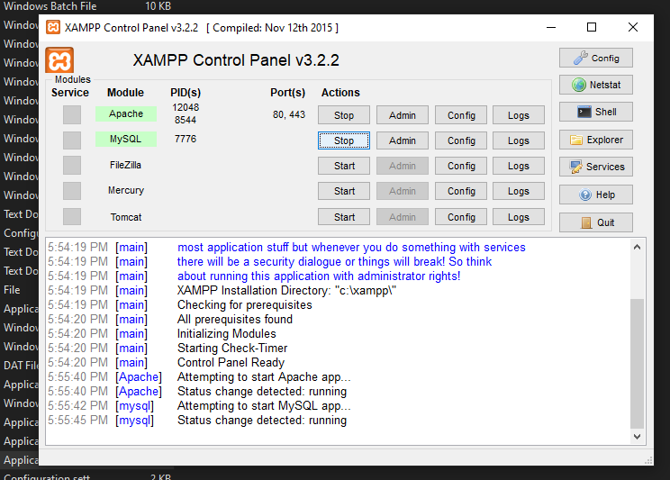 3. Nyalakan “Apache” dan “MySQL” di XAMPP control-panel.