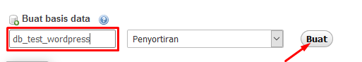 Buat nama database yang sesuai dan disini saya memberi nama “db_test_wordpress” dan klik “Buat“.
