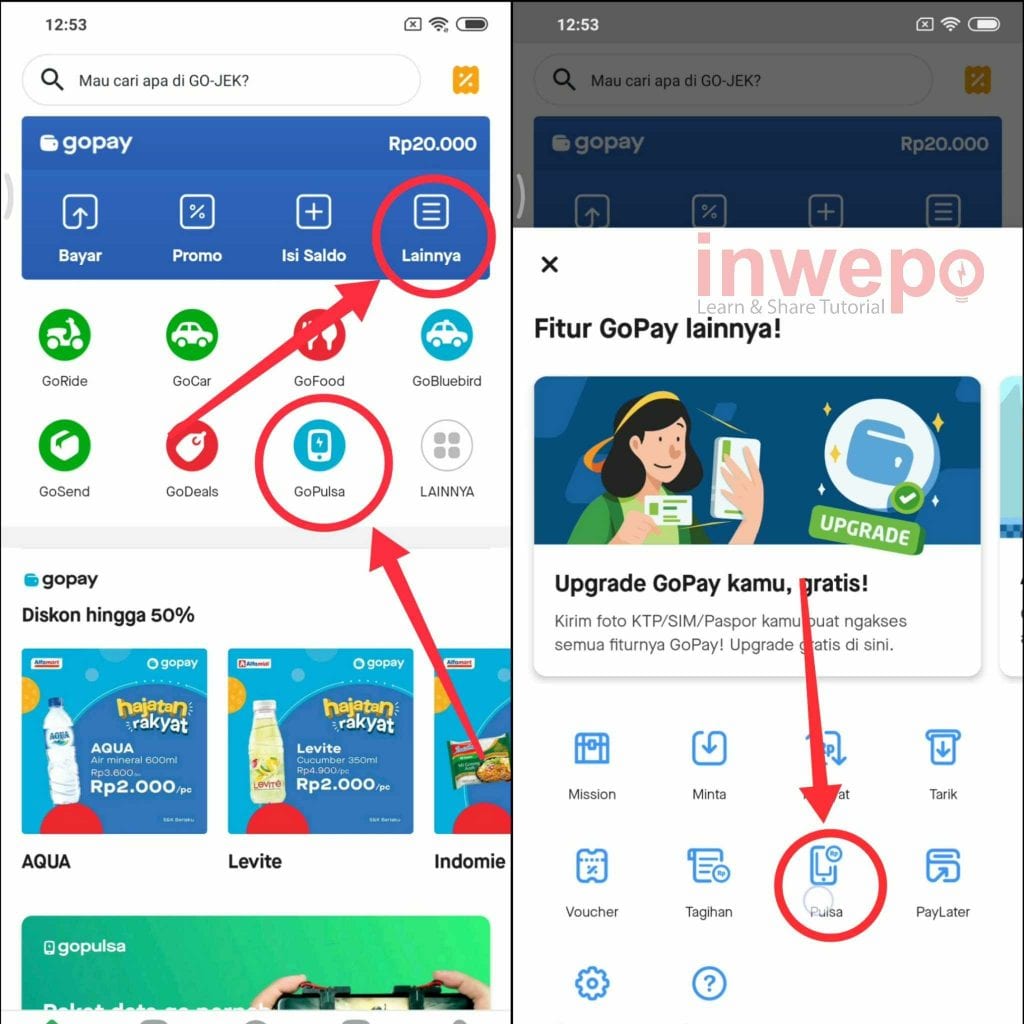 2. Langsung tap menu Gopulsa atau pilih menu lainnya dan kemudian pilih lagi Pulsa.