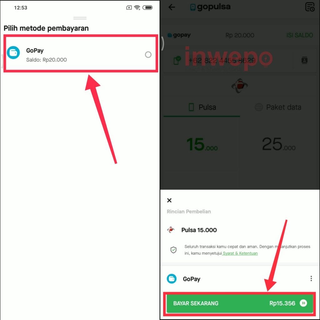 4. Pilih Saldo Gopay lalu tap Bayar Sekarang.