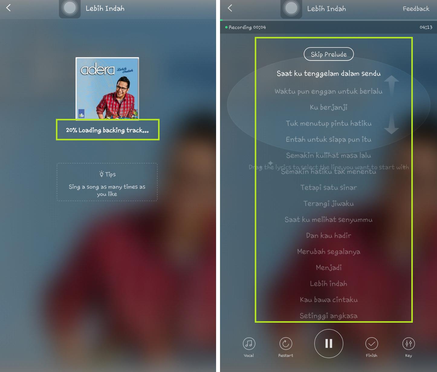 5. Selanjutnya kamu siap untuk memulai karaoke. pergerakan lyric akan disesuaikan dengan lagu sehingga kamu akan dengan mudah menyanyikannya.