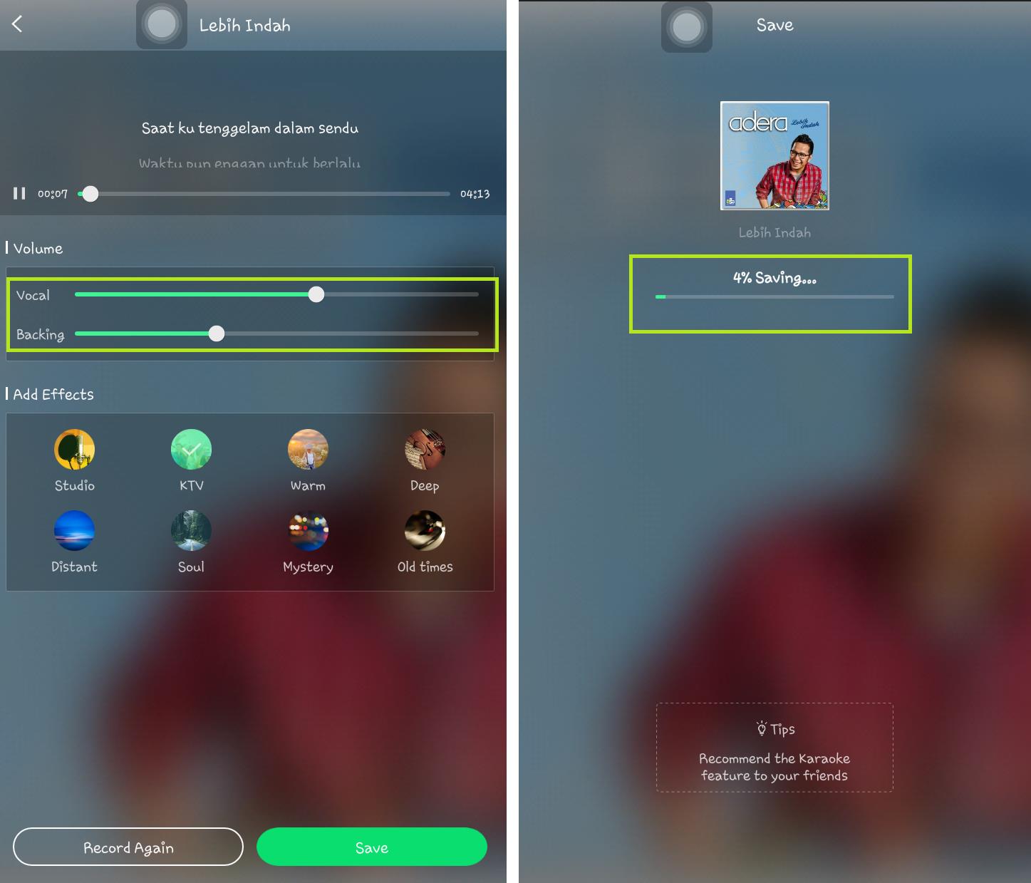 8. Jika dirasa cukup, kamu bisa langsung save hasil karaoke atau bisa juga melakukan record ulang.