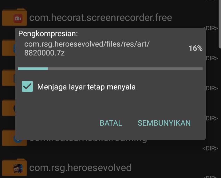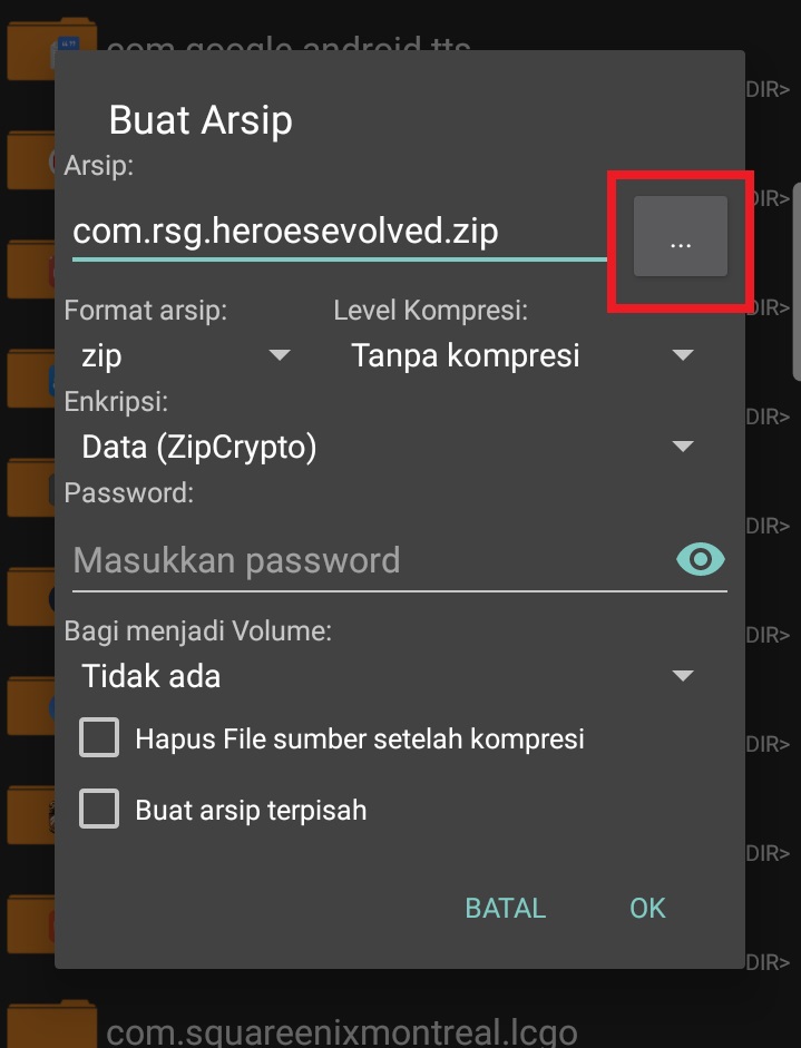 Langkah 1: kompres data game-nya di internal memory menggunakan aplikasi ZArchiver. Pada tutorial ini penulis mencontohkan pada game Heroes Evolved. berikut caranya: