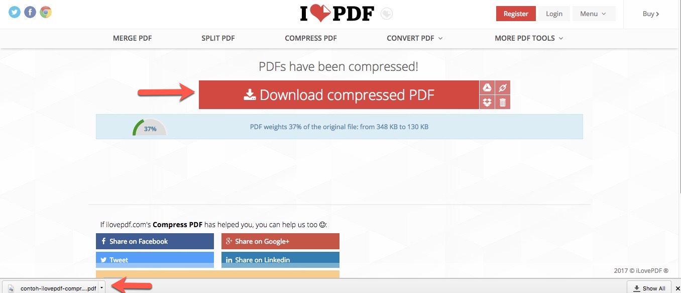5. File yang sudah dikompres nanti akan otomatis terdownload. Jika belum terdownload pilih tombol “Download compressed PDF” untuk mendownloadnya.