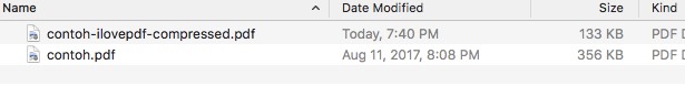 6. Hasil perbandingan file contoh.pdf ukuran sebelum di kompres 356KB setelah di kompres menjadi 133 KB.