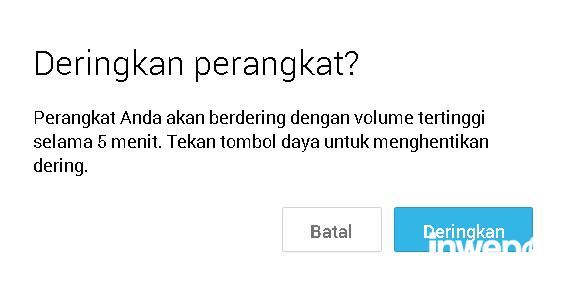 3. Bila memilih deringkan, nanti akan ada notifikasi untuk konfrimasi. jika iya maka nanti Android kamu akan berbunyi.
