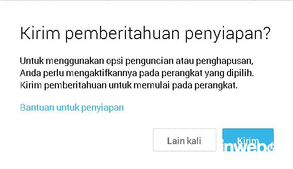 4. Begitu juga bila memilih “Siapkan kunci & hapus”. maka Android kamu yang hilang akan otomatis terkunci dan menghapus semua data dan file yang berada di memory Android kamu.