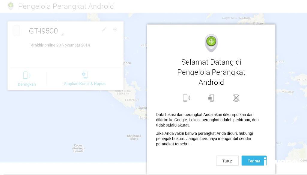 - Sudah ter-install aplikasi Android Device Manager dan mengaktifkan fitur tersebut.