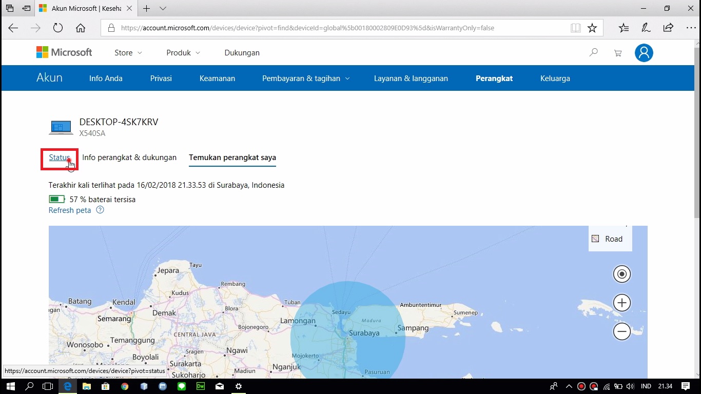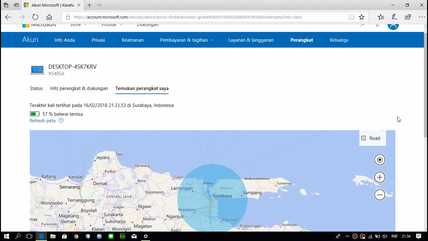 10. Tunggu beberapa saat hingga gambar di peta muncul dan menunjukkan lokasi perangkat kamu. Disini juga ditampilkan sisa baterai kamu saat ini dan juga ada status kapan terakhir perangkat kamu terlihat.