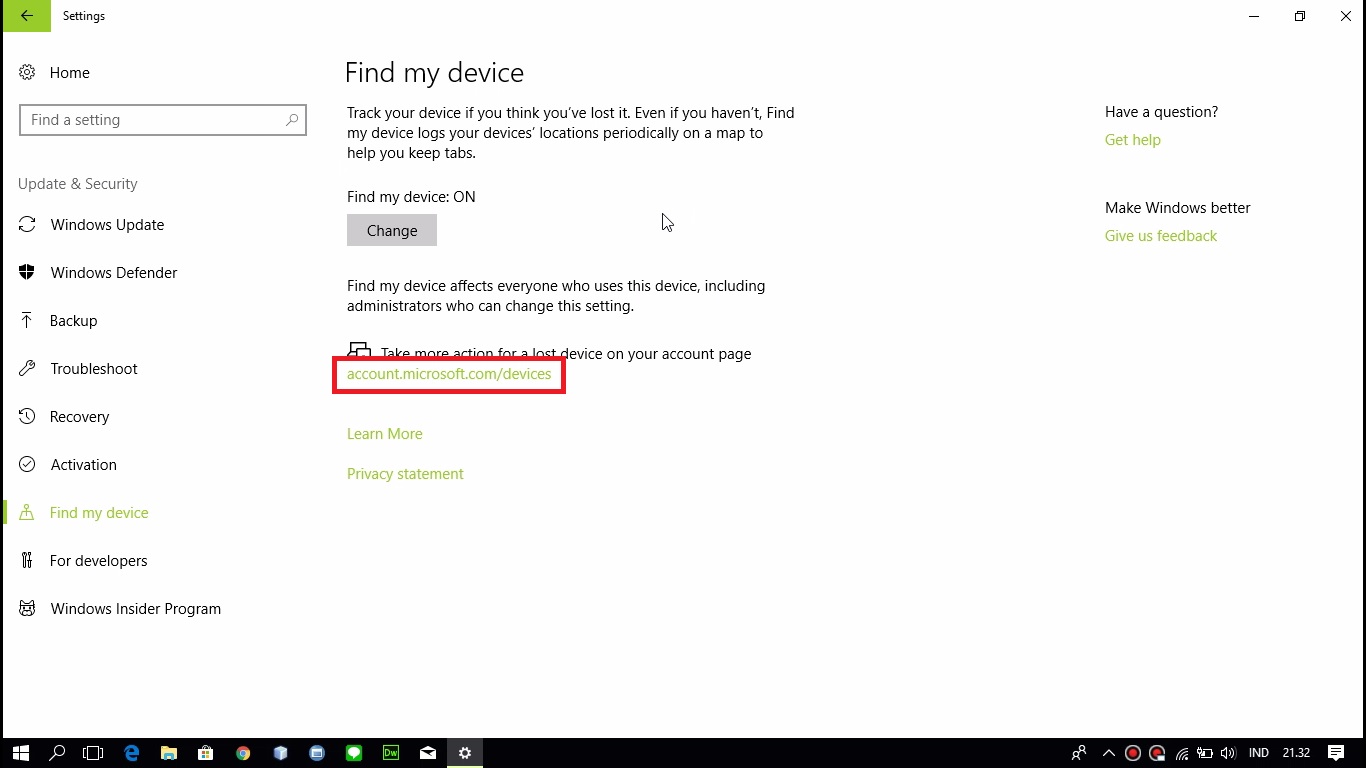 7. Jika kamu mau mencoba menemukan laptop kamu atau mendeteksi lokasi laptop kamu kunjungi link berikut https://account.microsoft.com/devices