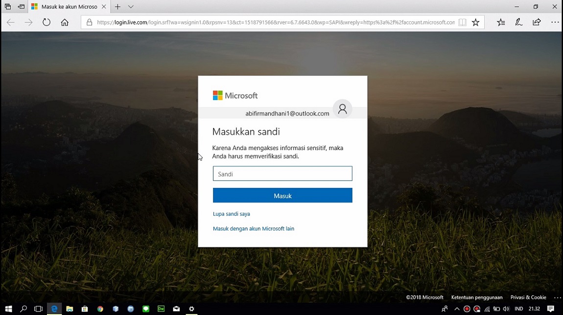 8. Disini kamu disuruh login dengan akun Microsoft, login dengan akun Microsoft yang sudah kamu tambahkan di laptop yang akan kamu temukan lokasinya
