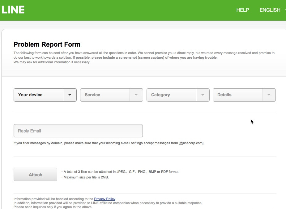 1. Buka situs LINE Problem Report Form https://contact.line.me