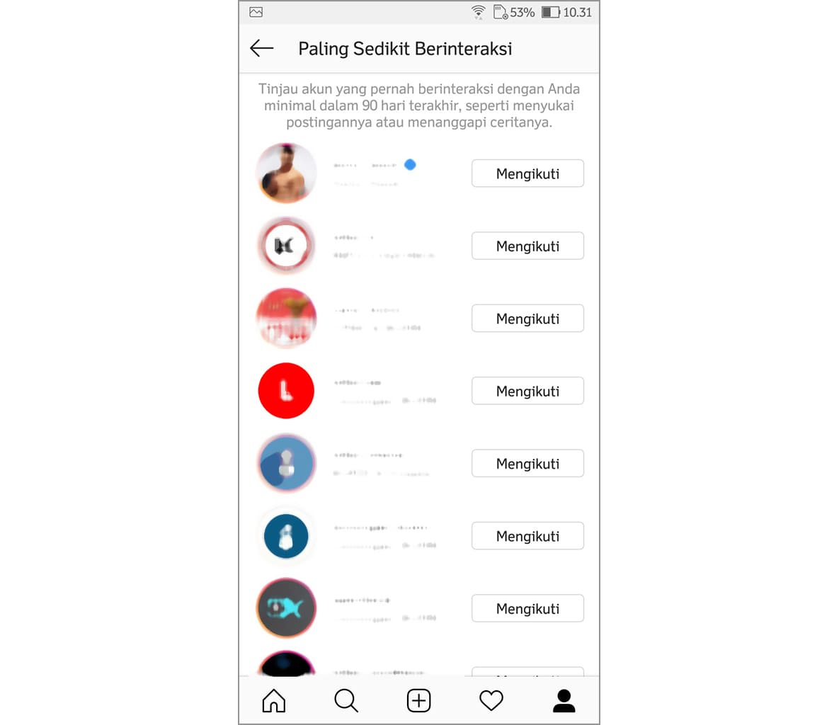 6. Selain melihat akun yang sering tampil di beranda, kamu juga bisa melihat akun yang paling sedikit berinteraksi seperti yang sudah disebutkan.