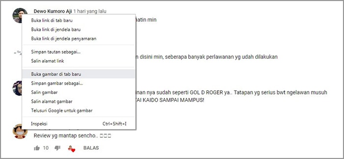 3. Apabila sudah menemukan foto profil yang ingin dilihat, silakan klik kanan – buka gambar di tab baru.