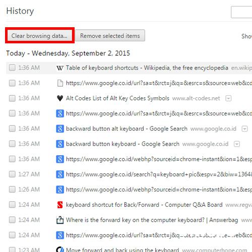 - Clear browsing history: menghapus keseluruhan browsing history