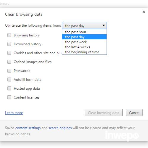 - Delete cookies and other site and plug-in data: menghapus daftar cookies dan plug-in yang ada di browser