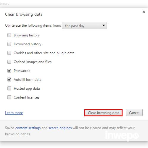 - Clear saved passwords: menghapus sandi yang tersimpan di browser