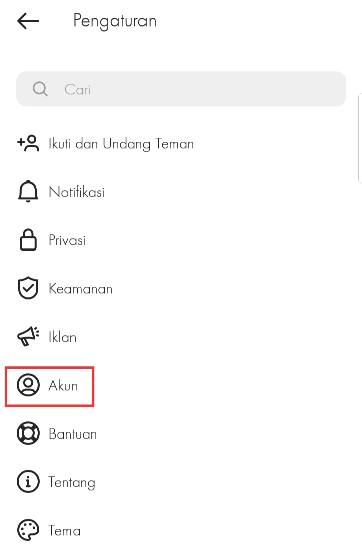 3. Pilih menu akun.