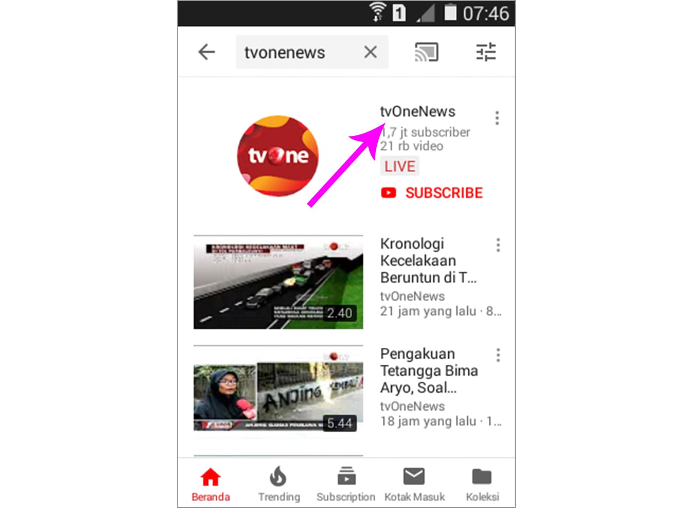 3. Ketuk nama channel.