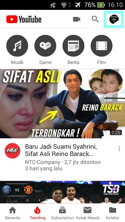 1. Buka aplikasi Youtube yang ada di Android dan tekan trending Youtube. Maka akan di bawa ke tampilan seperti gambar di bawah ini.