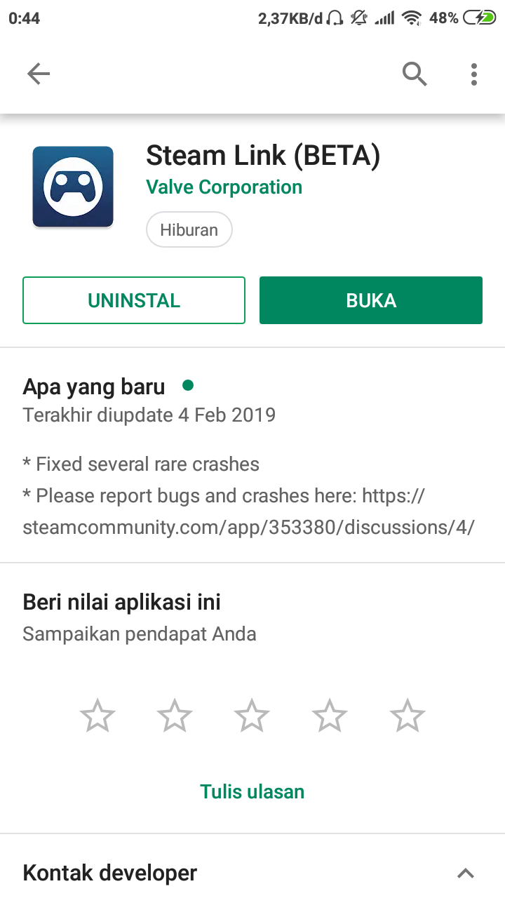 1. Unduh aplikasi Steam Link melalui halaman / aplikasi Play Store yang tersedia pada perangkat Android kamu.