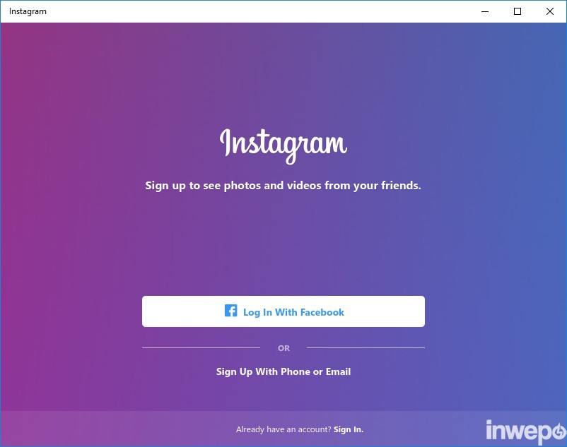 2. Setelah instalasi selesai, kini buka aplikasi Instagram di Windows 10 Anda untuk melakukan Sign in.