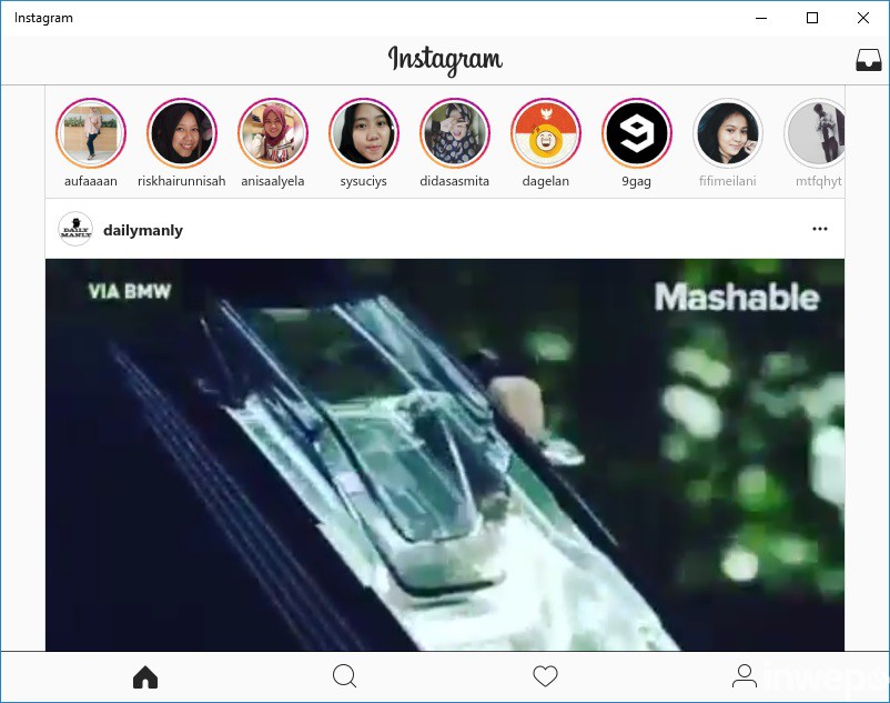4. Setelah berhasil masuk, maka Anda akan dibawa ke halaman awal Instagram di Windows 10.