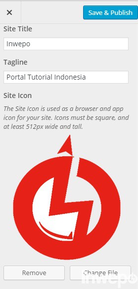 3. Masuk ke menu Appearance – Customize – Site Identify.