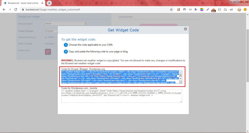2. Kunjungi situs widget prakiraan cuaca ini (https://www.booked.net/?page=weather_widget_customize).