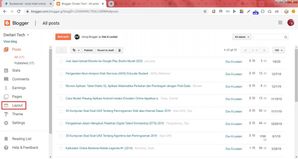 7. Klik Layout pada dashboard Blogger.