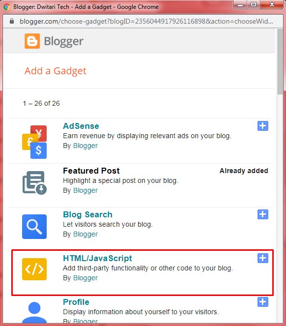 5. Salin / copy source code pada opsi Blogger.
