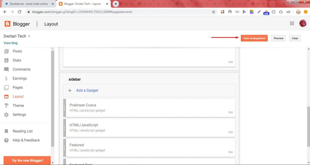 10. Klik Save Arrangement untuk menyimpan seluruh widget yang telah dikelola.