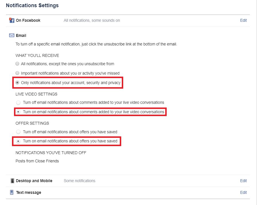 Tindakan di atas tidak membuat 100% semua notifikasi dari Facebook dimatikan, melainkan hanya notifikasi yang benar-benar sangat penting yang akan masuk ke email kamu, contohnya seperti notifikasi ketika kamu login atau ada yang login ke akun Facebook kamu melalui perangkat yang atau lokasi yang tidak dikenal. Selain itu juga ada notifikasi ketika ada seseorang atau kamu sendiri yang mencoba melakukan tindakan lupa password ketika ingin login ke akun Facebook kamu.