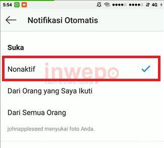 4. Lalu pada bagian komentar, kamu berikan centang pada bagian nonaktif agar setiap notifikasi suka tidak akan muncul notifikasinya.