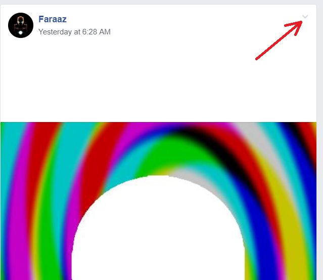 3. Jika postingan kamu sudah didapatkan, kamu klik tombol tanda panah ke bawah seperti pada gambar di bawah ini yang dimana letaknya berada di sudut kanan atas postingan kamu.