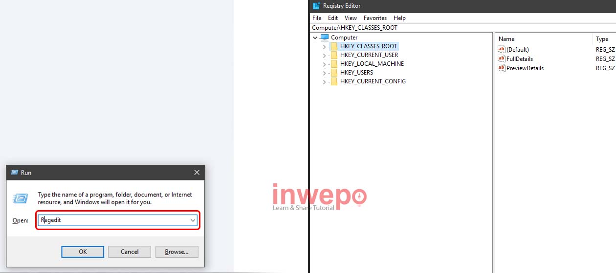 2. Ketik Regedit di bilah pencarian dan klik OK untuk membuka Windows Registry Editor.
