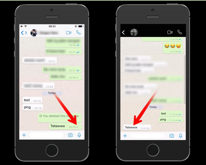Keterangan: Gambar kiri Pengirim dan gambar kanan penerima. Di gambar tersebut, penerima pesan sudah membaca pesan tersebut, tapi pengirim pesan tidak mengetahui kalau penerima sudah membaca pesan tersebut. Karena fitur Disable Read Receipts sudah di aktifkan.