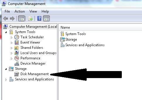 4. Pada menu “Storage” pilih “Disk Management”.