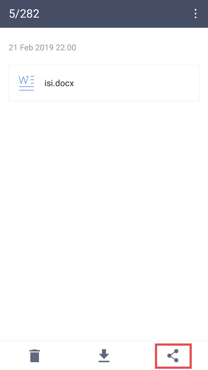 2. Setelah memilih file yang kita inginkan, klik logo Share yang berada di bagian kanan bawah aplikasi. Nantinya, kita akan diberikan opsi berupa bentuk pembagian file yang akan kita proses nantinya.