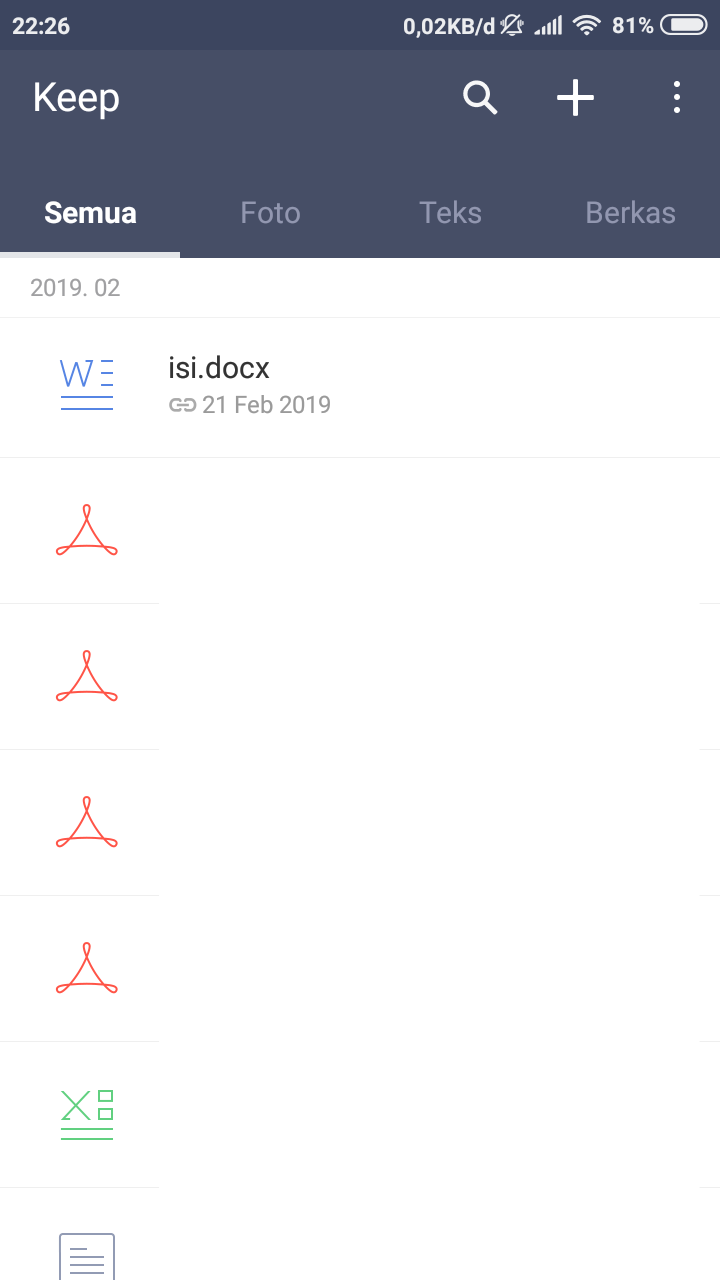 1. Masuklah ke halaman LINE Keep. Lalu, pilih file yang akan kita bagikan kepada kerabat kita melalui media link. Pada artikel ini, penulis memilih file dokumen yang nantinya akan dibagikan.