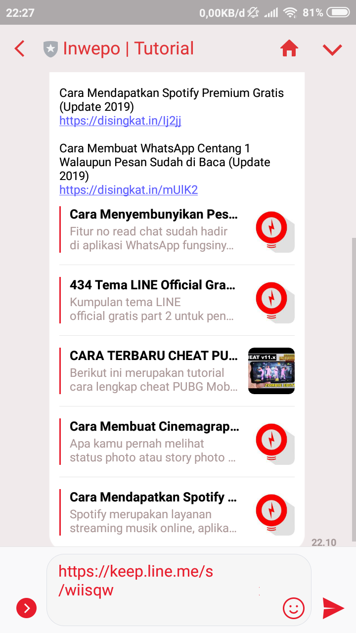 Demikian tutorial cara membagikan file menggunakan link dengan LINE Keep. Semoga bermanfaat.