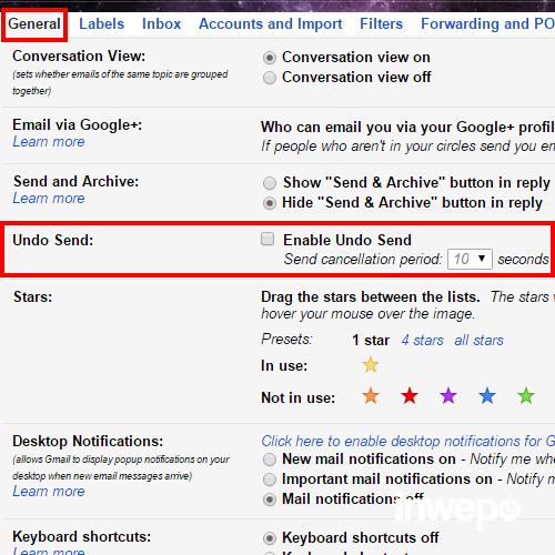 2. Pilih menu General. Di sana ada pilihan Undo Send. Ceklis Enable Undo Send.