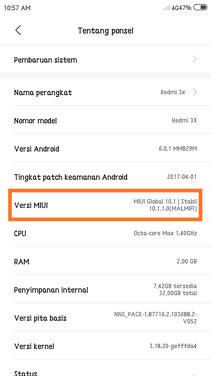 2. Lalu Tap Versi MIUI sebanyak 5x atau sampai muncul teks (Anda Telah Menjadi Pengembang) – setelah itu kembali ke menu pengaturan utama.