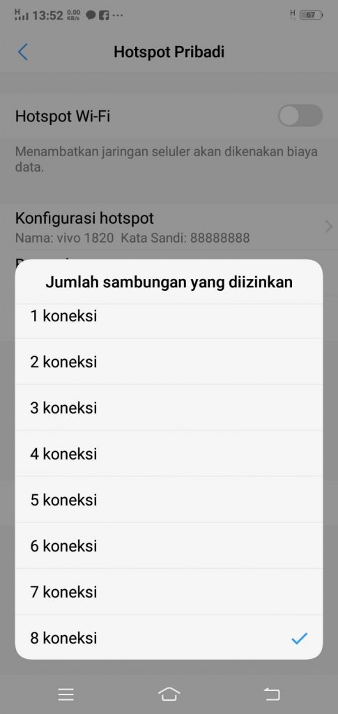 Jadi, kamu bisa melakukan pembatasan untuk perangkat-perangkat yang tersambung hotspot di smartphone Vivo yang telah kamu tentukan. Ini bisa mencegah sesuatu terjadi hal yang tidak diinginkan baik itu kapasitas kuota data internet atau hotspot smartphone kamu yang ada kemungkinan terjadi penyadapan yang secara pasti identitas kamu disalahgunakan untuk kepentingan penyadapan semata seperti melakukan carding, penyamaran, penipuan, dan sebagainya.