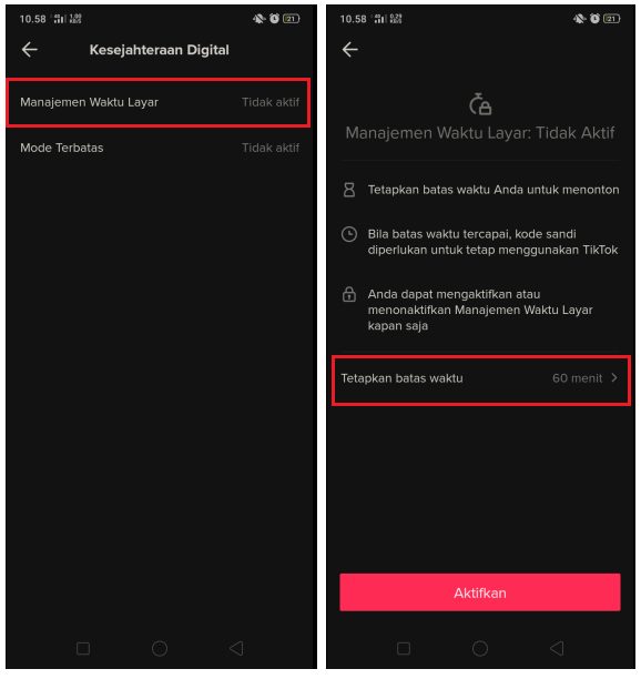 Fitur Manajemen Waktu Layar di aplikasi TikTok