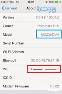 Kita dapat mengetahui jenis iPhone dari IMEI. Periksa nomor IMEI di web http://www.imei.info/ akan ada info tentang iphone yg kita pakai. Nomor IMEI dan model iPhone dapat kita lihat masuk ke Settings > General > About