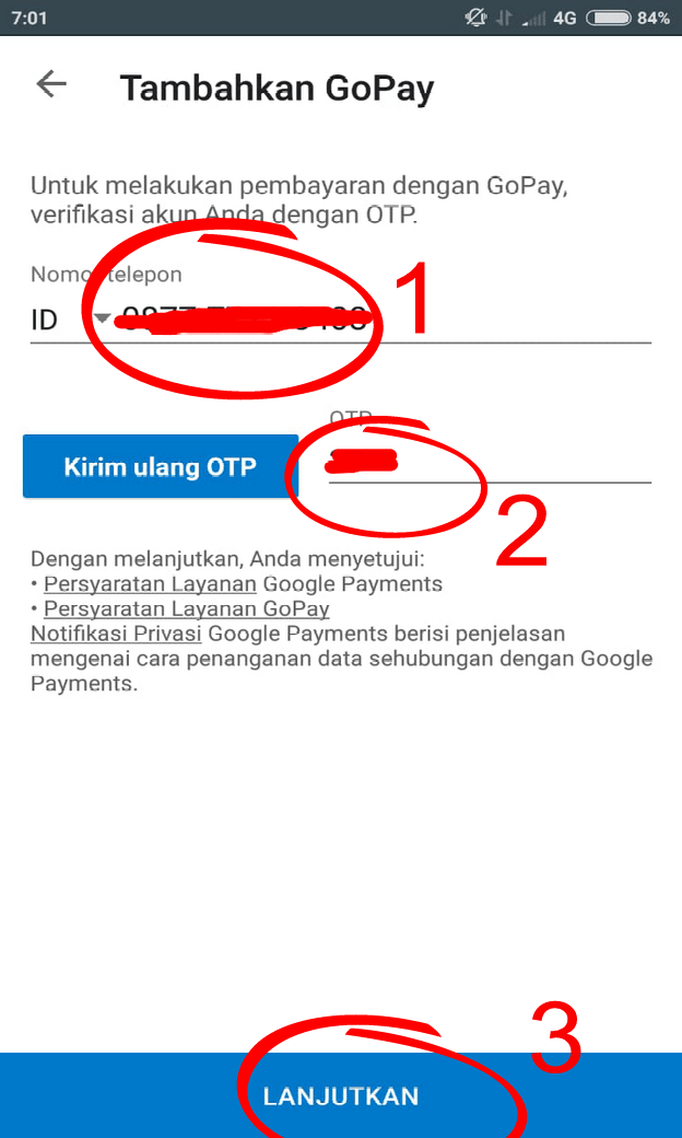 7. Setelah itu masukan nomor GoPay kamu dan isi kode OTP yang dikirimkan.