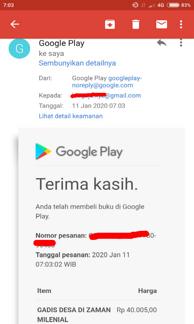 Jika berhasil melakukan pembelian, maka kamu akan mendapatkan notifikasi tentang transaksi tersebut melalui Email.