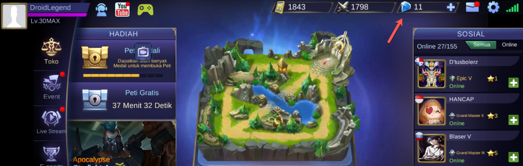 10. Silakan relogin akun mobile legends yang telah diisikan diamond, maka otomatis akan masuk diamond.